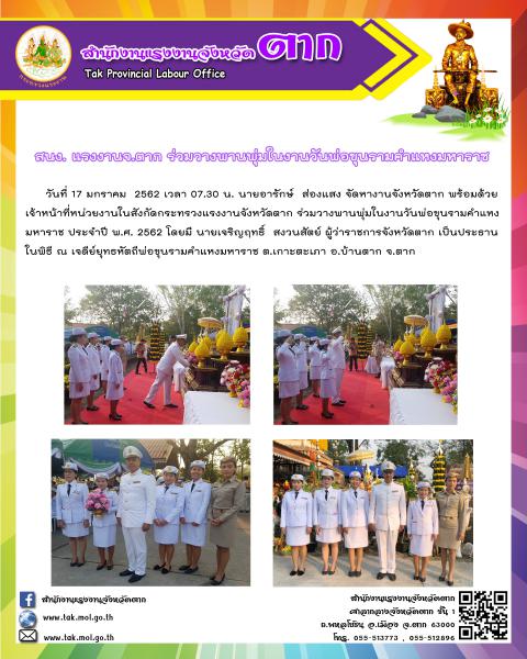 สำนักงานแรงงานจังหวัดตาก ร่วมวางพานพุ่มในงานวันพ่อขุนรามคำแหงมหาราช