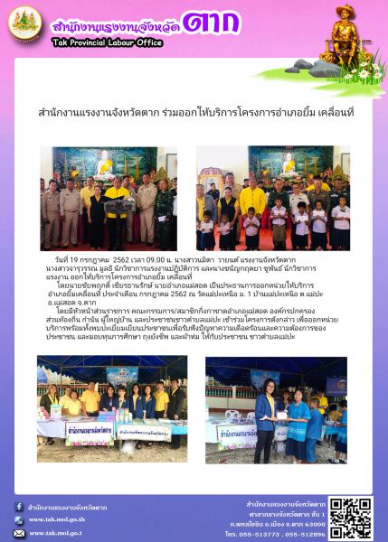 สำนักงานแรงงานจังหวัดตาก ร่วมออกให้บริการโครงการอำเภอยิ้ม เคลื่อนที่