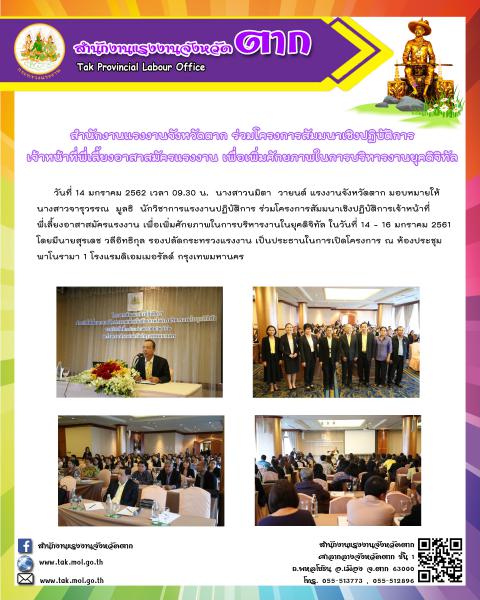 สำนักงานแรงงานจังหวัดตาก ร่วมโครงการสัมมนาเชิงปฏิบัติการ เจ้าหน้าที่พี่เลี้ยงอาสาสมัครแรงงาน เพื่อเพิ่มศักยภาพในการบริหารงานยุคดิจิทัล