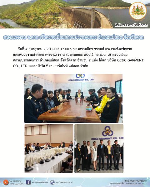 สำนักงานแรงงานจังหวัดตาก เข้าตรวจเยี่ยมสถานประกอบการอำเภอแม่สอด จังหวัดตาก