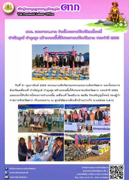 สำนักงานแรงงานจังหวัดตาก ร่วมโครงการจังหวัดเคลื่อนที่ บำบัดทุกข์ บำรุงสุข สร้างรอยยิ้มให้ประชาชนจังหวัดตาก ประจำปี 2562
