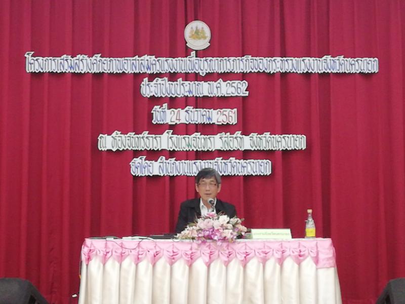 เมื่อวันที่ 24 ธันวาคม 2561 เวลา 09.30น. สำนักงานแรงงานจังหวัดนครนายก จัดประชุมโครงการเสริมสร้างศักยภาพเครือข่ายอาสาสมัครแรงงานเพื่อบูรณาการภารกิจของกระทรวงแรงงานจังหวัดนครนายก ประจำปีงบประมาณ พ.ศ.2562 “หลักสูตรการพัฒนาอาสาสมัครแรงงานและพี่เลี้ยงอาสาสมัครแรงงาน 7 สมรรถนะ” โดยมี นายสมชาย เอื้อจารุพร แรงงานจังหวัดนครนายก เป็นประธาน และได้รับเกียรติจากอาจารย์กิตติกร เรืองขำ เป็นวิทยากรในการบรรยาย ณ โรงแรมจันทรา รีสอร์ท อ.เมือง จ.นครนายก