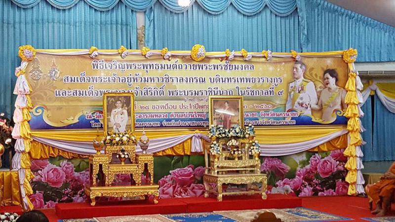 วันอังคารที่ 28 พฤศจิกายน 2560 เวลา 15.45 น. สำนักงานแรงงานจังหวัดนครนายก เข้าร่วมพิธีเจริญพระพุทธมนต์เฉลิมพระเกียรติ และถวายพระพรชัยมงคลแด่สมเด็จพระเจ้าอยู่หัวมหาวชิราลงกรณ บดินทรเทพยวรางกูรและสมเด็จพระนางเจ้าสิริกิติ์ พระบรมราชินีนาถ ในรัชกาลที่ 9 ณ วัดพราหมณี พระอารามหลวง ตำบลบ้านใหญ่ อำเภอเมืองนครนายก จังหวัดนครนายก โดยมีพระราชพรหมคุณ เจ้าคณะจังหวัดนครนายก เป็นประธานฝ่ายสงฆ์ และนายณัฐพงศ์ ศิริชนะ ผู้ว่าราชการจังหวัดนครนายก เป็นประธานฝ่ายฆราวาส