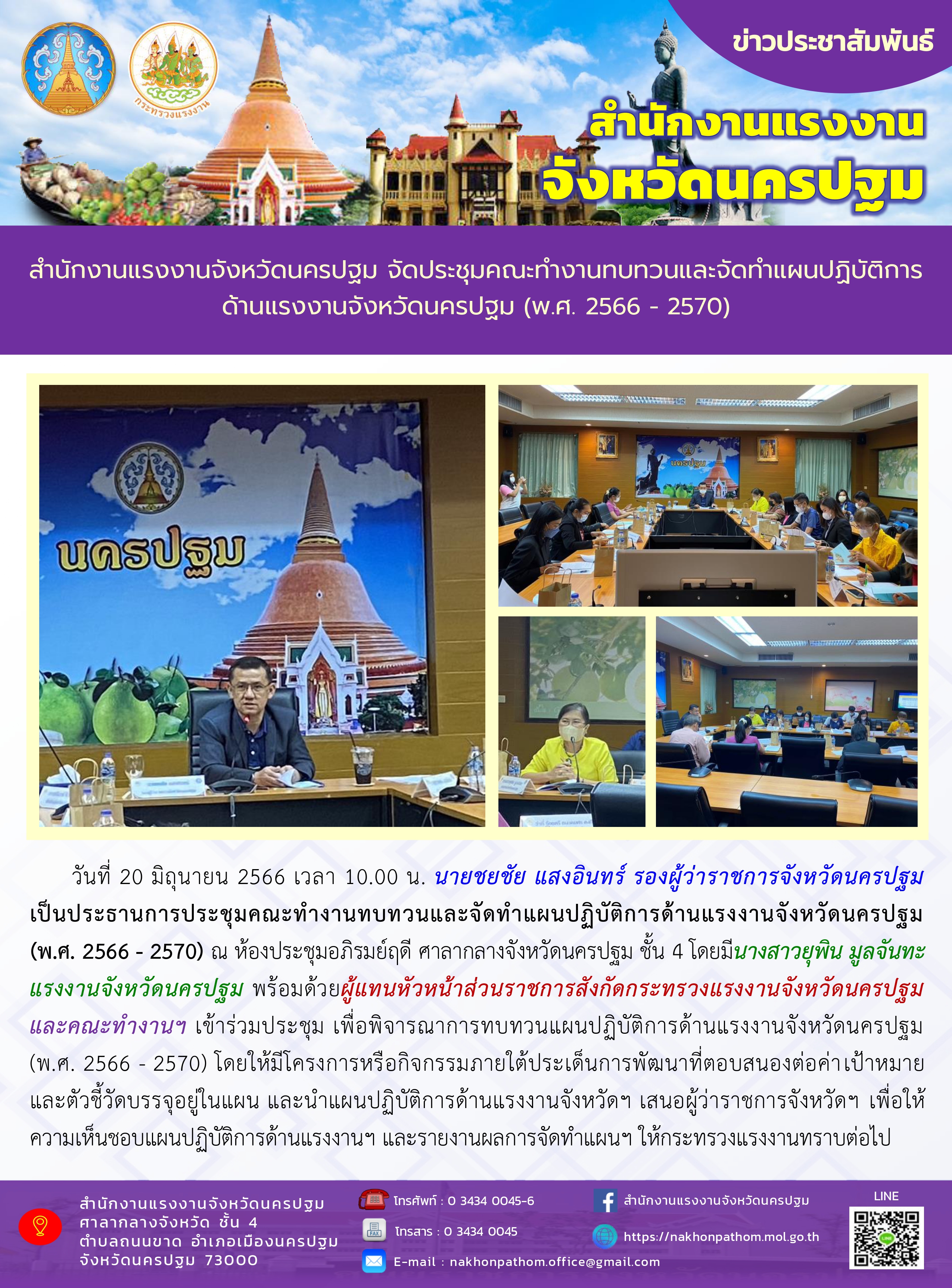 สรจ.นครปฐม จัดประชุมคณะทำงานทบทวนและจัดทำแผนปฏิบัติการด้านแรงงานจังหวัดนครปฐม (พ.ศ. 2566 – 2570)