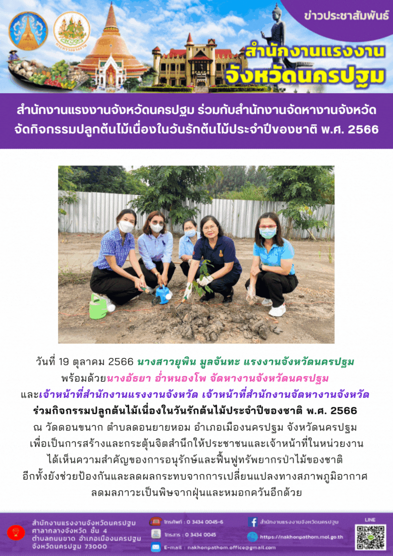 สรจ.นครปฐม จัดกิจกรรมปลูกต้นไม้เนื่องในวันรักต้นไม้ประจำปีของชาติ พ.ศ. 2566