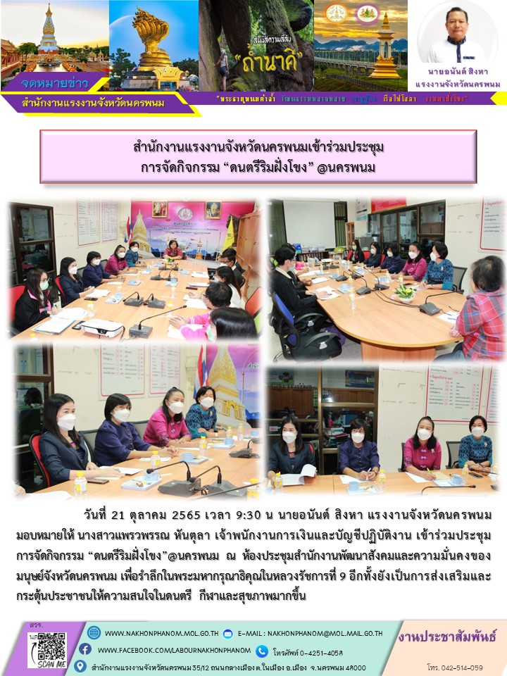 สำนักงานแรงงานจังหวัดนครพนมเข้าร่วมประชุมการจัดกิจกรรม “ดนตรีริมฝั่งโขง” @นครพนม