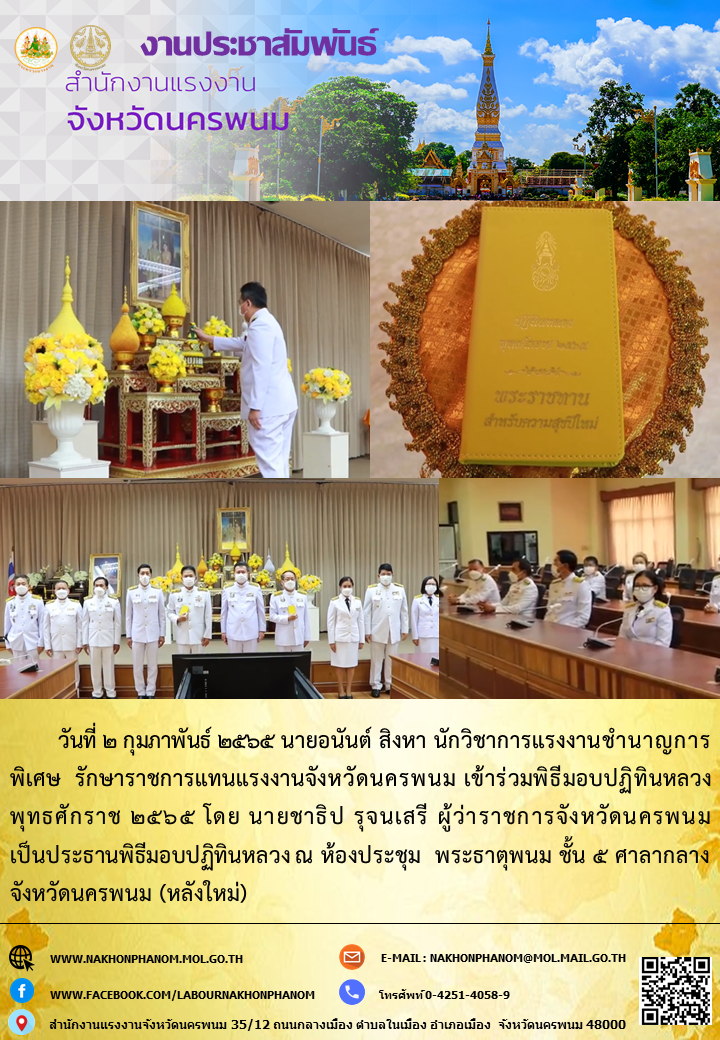 สำนักงานแรงงานจังหวัดนครพนมเข้าร่วมพิธีมอบปฏิทินหลวง พุทธศักราช 2565