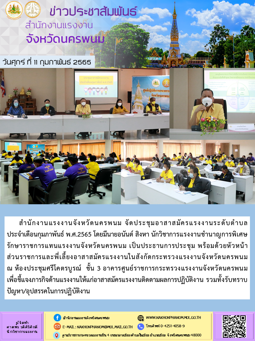 สำนักงานแรงงานจังหวัดนครพนม ประชุมอาสาสมัครแรงงาน