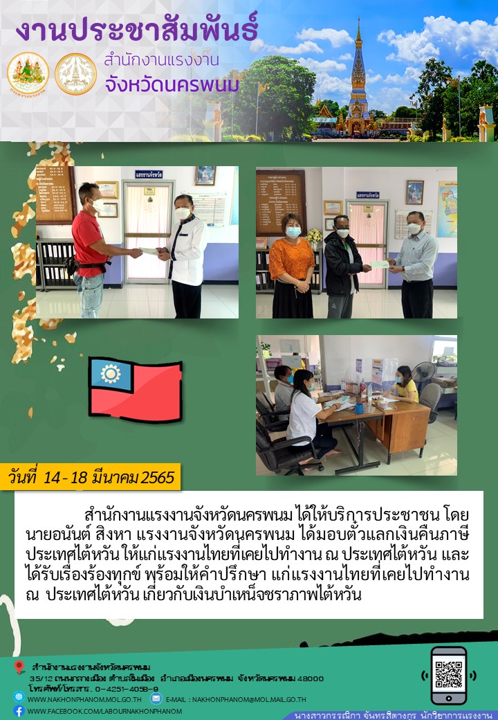 สำนักงานแรงงานจังหวัดนครพนม ให้บริการ “ติดตามสิทธิประโยชน์แรงงานในต่างประเทศ”