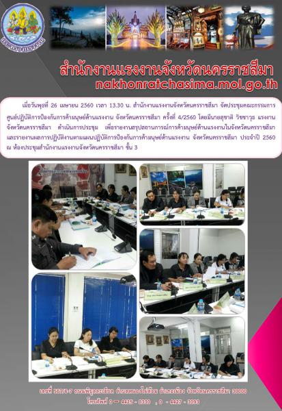 สำนักงานแรงงานจังหวัดนครราชสีมา จัดประชุมคณะกรรมการศูนย์ปฏิบัติการป้องกันการค้ามนุษย์ด้านแรงงาน จังหวัดนครราชสีมา ครั้งที่ 4/2560