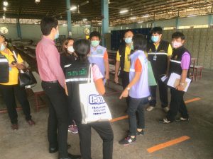 นายเสกสรรค์ สายอ่อน นักวิชาการแรงงาน ได้รับมอบหมายให้ร่วมตรวจติดตามการดำเนินงานตามมาตรการป้องกันการแพร่ระบาดของโรคติดเชื้อไวรัสโคโรนา 2019 ในโรงงาน Good Factory Pactice (GFP) แบบ onsite ร่วมกับ ผู้แทนสำนักงานอุตสาหกรรมจังหวัด ผู้แทนสำนักงานสาธารณสุขจังหวัด ผู้แทนศูนย์อนามัยที่ 9 ผู้แทนสำนักงานสวัสดิการและคุ้มครองแรงงานจังหวัด และผู้แทนสำนักงานประกันสังคมจังหวัด จำนวน 3 โรงงาน ได้แก่ บริษัท บีบีเอ็ม อินเตอร์ฟู้ด จำกัด ประกอบกิจการผลิตอาหารแปรรูป ส่งออก พนักงาน 295 คน แยกเป็นสัญชาติไทย 123 คน เมียนมา 153 คน กัมพูชา 17 คน และลาว 2 คน บริษัท แหลมทองโปรตีนฟู้ด จำกัด และบริษัท แหลมทองโพลทริ จำกัด ประกอบกิจการผลิตอาหารแปรูป ส่งออก พนักงานรวม 2,645 คน แยกเป็นสัญชาติไทย 718 คน เมียนมา 1,926 คน และลาว 1 คน ทั้งนี้ จากการตรวจติดตามการดำเนินการของโรงงานส่วนใหญ่เป็นไปตามมาตรการที่กำหนดในส่วนที่ยังไม่ได้ดำเนินการหรือดำเนินการแล้วแต่ยังไม่เป็นไปตามมาตรการที่กำหนดได้ให้คำแนะนำและแนวทางการดำเนินการให้เป็นไปตามมาตรการที่กระทรวงสาธารณสุขกำหนดต่อไป