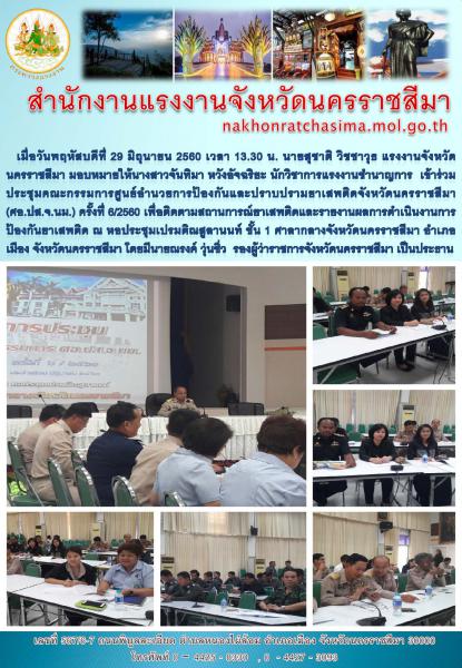 สำนักงานแรงงานจังหวัดนครราชสีมา เข้าร่วมประชุมคณะกรรมการศูนย์อำนวยการป้องกันและปราบปรามยาสเพติดจังหวัดนครราชสีมา (ศอ.ปส.จ.นม.) ครั้งที่ 6/2560