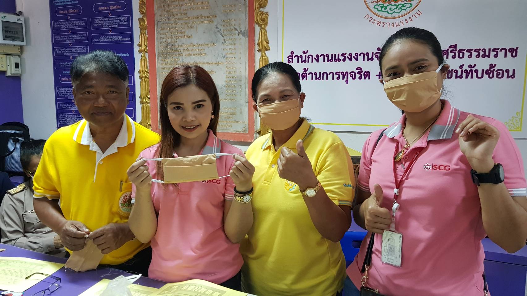 วันที่ 9 มีนาคม 2563 นายบุญลอย เขียดนิล แรงงานจังหวัดนครศรีธรรมราช ได้มอบหมายให้ นายสักกพล นนทแก้ว นักวิชาการแรงงาน ร่วมกับนางสาวสุคล จินดาวงศ์ อาสาสมัครแรงงานดีเด่นจังหวัดนครศรีธรรมราช ประจำปี 2563 ฝึกอาชีพอิสระ “การทำหน้ากากอนามัย” ให้กับอาสาสมัครแรงงานอำเภอทุ่งสง เครือข่ายกำนัน ผู้ใหญ่บ้าน และประชาชนผู้มาใช้บริการ เพื่อขยายผลทำใช้ในชุมชน ณ ศูนย์บริการร่วมกระทรวงแรงงาน ที่ว่าการอำเภอทุ่งสง จังหวัดนครศรีธรรมราช