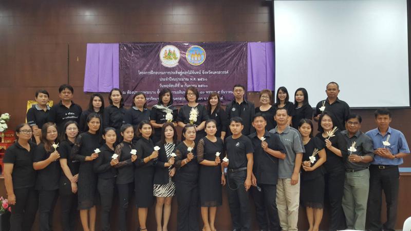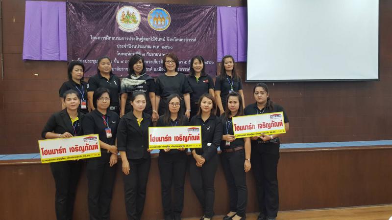 เมื่อวันพฤหัสบดีที่ 7 กันยายน 2560 เวลา 09.00 น. นางพัฒนา พันธุฟัก แรงงานจังหวัดนครสวรรค์ ร่วมบูรณาการทุกภาคส่วน ได้แก่ หน่วยงานสังกัดกระทรวงแรงงานจังหวัดนครสวรรค์ อาสาสมัครแรงงาน สถานประกอบการ เครือข่ายชุมชน และประชาชน จัดโครงการฝึกอบรมการประดิษฐ์ดอกไม้จันทน์ จังหวัดนครสวรรค์ ประจำปีงบประมาณ พ.ศ.2560 ณ ห้องประชุมพระบาง (ชั้น4) อาคารเฉลิมพระเกียรติ 80 พรรษา (5 ธันวาคม 2550) มหาวิทยาลัยราชภัฏนครสวรรค์ อำเภอเมือง จังหวัดนครสวรรค์ มีผู้เข้าร่วมโครงการฯ จำนวน 150 คน