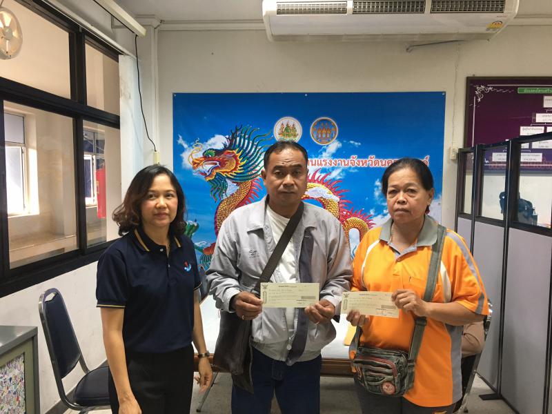 เมื่อวันพุธที่ 13 กุมภาพันธ์ ๒๕๖2 เวลา 09.30 น. นางสาววิริยาภรณ์ เปรมโพธิ์ รักษาราชการแทนแรงงานจังหวัดนครสวรรค์ เป็นผู้มอบตั๋วแลกเงินคืนภาษีไต้หวันให้แก่คนงานไทย 2 ราย นายนันทชัย แหยมพลับ จำนวนเงิน 38,939.96 บาท และนายมงคล โตทด มอบอำนาจให้นางสามารถ โตทด เป็นผู้รับเงินแทน จำนวนเงิน 12,718.27 บาท ซึ่งภูมิลำเนาอยู่ในเขตพื้นที่อำเภอชุมแสง จังหวัดนครสวรรค์ ณ สำนักงานแรงงานจังหวัดนครสวรรค์ (ชั้น ๓) ศาลากลางจังหวัดนครสวรรค์