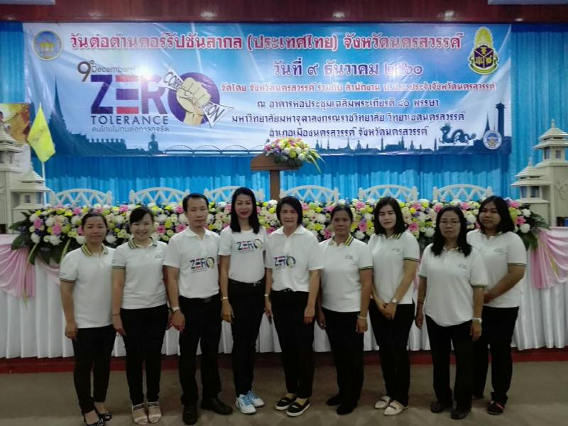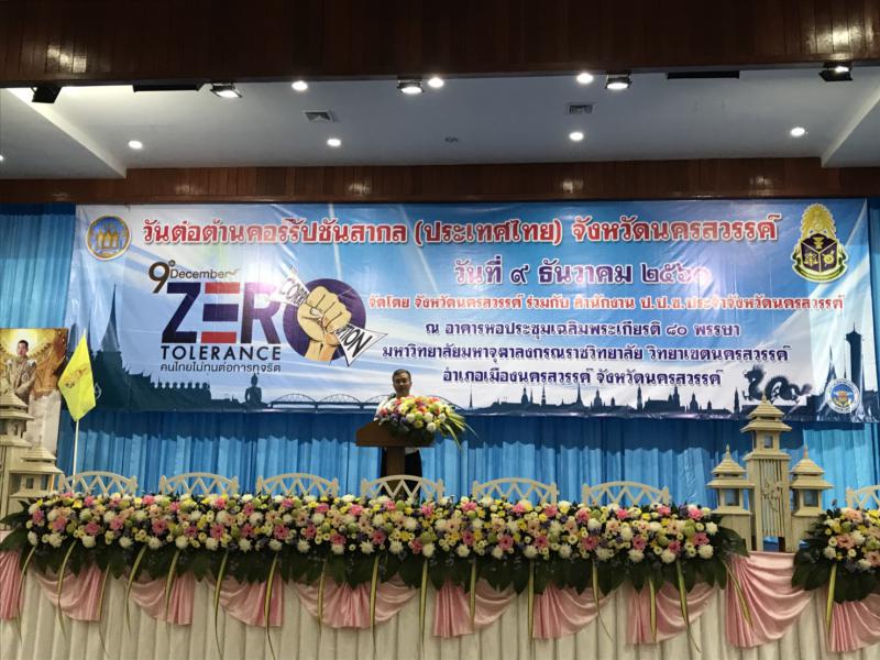 เมื่อวันเสาร์ ที่ 9 ธันวาคม 2560 เวลา 08.30 น. ณ อาคารหอประชุมเฉลิมพระเกียรติ 80 พรรษา มหาวิทยาลัยมหาจุฬาลงกรณราชวิทยาลัย วิทยาเขตนครสวรรค์ นายธนาคม จงจิระ ผู้ว่าราชการจังหวัดนครสวรรค์ พร้อมด้วย นางอุษณี จงจิระ นายกเหล่ากาชาดจังหวัดนครสวรรค์ เป็นประธานในพิธีเปิดงานการจัดงานวันต่อต้านคอร์รัปชันสากล (ประเทศไทย) จังหวัดนครสวรรค์ โดยที่ UN ได้ประกาศให้วันที่ 9 ธันวาคมของทุกปีเป็นวันต่อต้านคอร์รัปชันสากล (International Anti-Corruption Day) เป็นการกระตุ้นให้ทุกคนในสังคมตระหนักถึงภัยร้ายแรงของการทุจริต พร้อมกับไม่ยอมรับต่อการทุจริตทุกประเภท โดยงานจัดขึ้นภายใต้แนวคิด "Zero Tolerance คนไทยไม่ทน ต่อการทุจริต" เพื่อเป็นการสร้างสังคมโปร่งใสให้เกิดขึ้นในพื้นที่จังหวัดนครสวรรค์ โดยสำนักงานแรงงานจังหวัดนครสวรรค์ได้มอบหมายให้นายเดชณรงค์ มูลพร้อม นักวิชาการแรงงานปฏิบัติการ เข้าร่วมกิจกรรมและมีข้าราชการและเจ้าหน้าที่หน่วยงานสังกัดกระทรวงแรงงาน จังหวัดนครสวรรค์และอาสาสมัครแรงงานระดับตำบลเกี่ยวข้อง เข้าร่วมกิจกรรมดังกล่าว