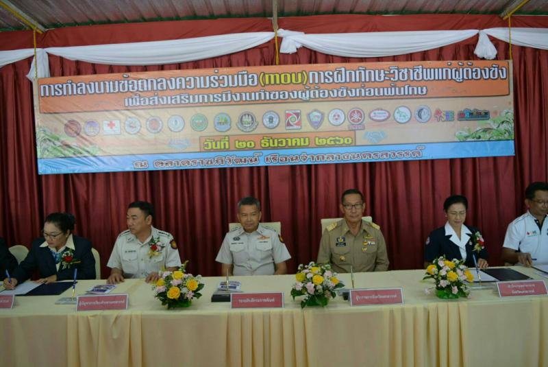 เมื่อวันพุธที่ 20 ธันวาคม 2560 เวลา 11.00 น. นายประทีป ศิลปเทศ รองผู้ว่าราชการจังหวัดนครสวรรค์ ร่วมกับนายกิตติพัฒน์ เดชะพหุล รองอธิบดีกรมราชทัณฑ์ เป็นประธานพิธีเปิดโครงการนายสารพัดช่างเคลื่อนที่ และร่วมลงนามข้อตกลงความร่วมมือ (MOU) การฝึกทักษะวิชาชีพผู้ต้องขัง ณ ตลาดราชภิวัฒน์ (หน้าเรือนจำกลางนครสวรรค์) ตำบลนครสวรรค์ตก อำเภอเมือง จังหวัดนครสวรรค์ ในการนี้สำนักงานแรงงานจังหวัดนครสวรรค์ได้มอบหมายให้นายสุชัย ชาญวิกย์การ นักวิชาการแรงงานชำนาญการพิเศษ รักษาราชการแทนแรงงานจังหวัดนครสวรรค์ เข้าร่วมพิธีเปิดและลงนามข้อตกลงความร่วมมือ (MOU) ดังกล่าว