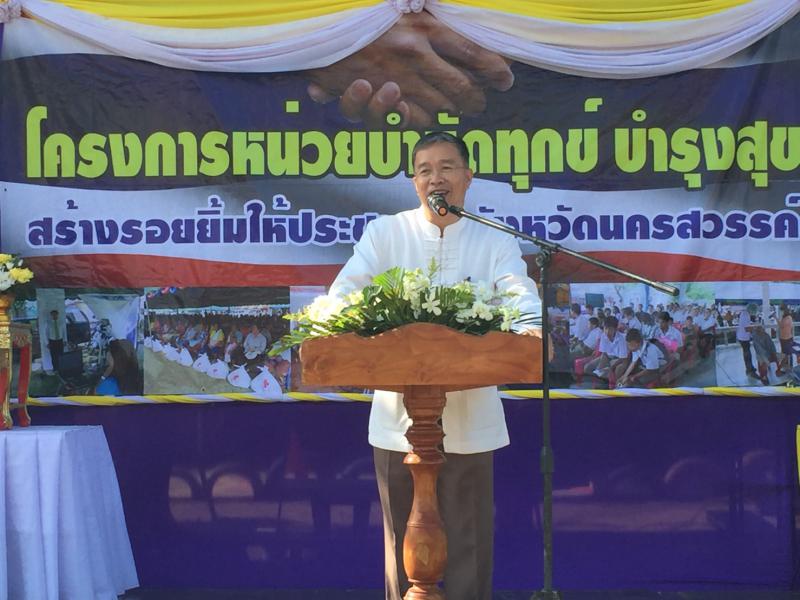 เมื่อวันพฤหัสบดีที่ 21 ธันวาคม 2560 เวลา 09.00 น. นายธนาคม จงจิระ ผู้ว่าราชการจังหวัดนครสวรรค์ เป็นประธานพิธีเปิดโครงการหน่วยบำบัดทุกข์ บำรุงสุข สร้างรอยยิ้มให้ประชาชนจังหวัดนครสวรรค์ (ประจำเดือนธันวาคม 2560) ณ วัดน้ำสาดกลาง หมู่ที่ 4 ตำบลธารทหาร อำเภอหนองบัว จังหวัดนครสวรรค์ โดยมีนายวัชร์ชลธนวงค์ บุญประกอบ นักวิชาการแรงงานชำนาญการ และนายสุทัศน์ ศรีมุข นักวิชาการแรงงาน พร้อมด้วยผู้แทนส่วนราชการสังกัดกระทรวงแรงงานในจังหวัด นำบริการและกิจกรรมไปร่วมโครงการฯ ดังกล่าว ได้แก่ บริการรับสมัครงาน แจ้งตำแหน่งงานว่าง สาธิตการประกอบอาชีพอิสระ รับเรื่องราวร้องทุกข์ให้คำปรึกษาด้านแรงงาน บริการด้านประกันสังคม รวมทั้งเผยแพร่เอกสาร และสื่อประชาสัมพันธ์ด้านแรงงานต่างๆ มีประชาชน นักเรียน และหน่วยงานต่างๆ มาใช้บริการเป็นจำนวนมาก