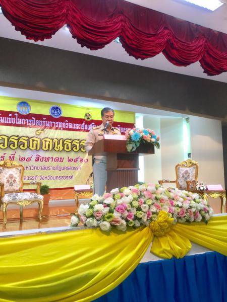 เมื่อวันจันทร์ที่ 28 สิงหาคม 2560 เวลา 09.00 น. ณ หอประชุมมหาวิทยาลัยราชภัฏนครสวรรค์ นายธนาคม จงจิระ ผู้ว่าราชการจังหวัดนครสวรรค์ เป็นประธานในการเปิดการเสวนาเพื่อเสริมสร้างความเข้มแข็งในการป้องกันการทุจริตและส่งเสริมคุณธรรมจริยธรรม ในหัวข้อ "นครสวรรค์คนธรรมดี" เพื่อเสริมสร้างความเข้มแข็งในการ ร่วมกัน ป้องกันปราบปรามการทุจริตและส่งเสริมคุณธรรมจริยธรรม ทั้งนี้มีข้าราชการจากหน่วยงานที่เกี่ยวข้อง นักเรียน นักศึกษา บุคลากรทางการศึกษาและผู้นำชุมชน เข้าร่วมงานเสวนาในครั้งนี้ โดยมีวิทยากรได้แก่ รองศาสตราจารย์ ดร.สุขุม เฉลยทรัพย์ รองศาสตราจารย์สุขุม นวลสกุล และนายศิวะ ศิริเสาวลักษณ์ ประธานคณะกรรมการจริยธรรมจังหวัดนครสวรรค์ ร่วมเสวนาให้ความรู้ความเข้าใจ โดยสำนักงานแรงงานจังหวัดนครสวรรค์ มอบหมายให้นายสุชัย ชาญวิกย์การ นักวิชาการแรงงานชำนาญการพิเศษ และนางสาวสุดารัตน์ มัชชะ เจ้าพนักงานการเงินและบัญชีปฏิบัติงานร่วมกิจกรรมดังกล่าว