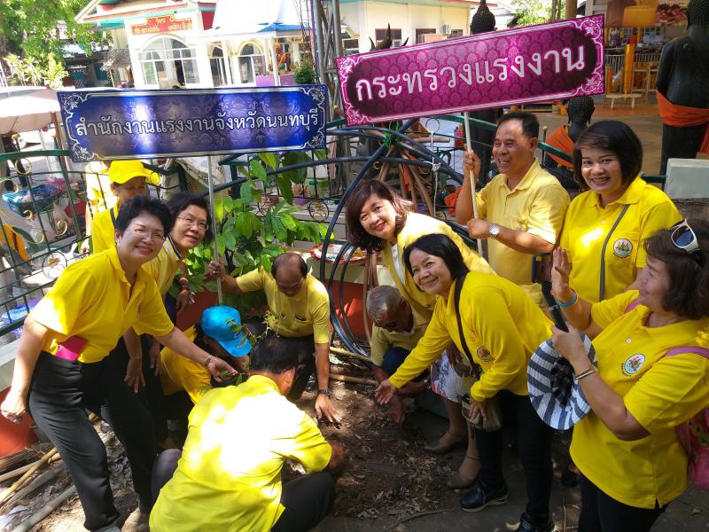 วันศุกร์ที่ 19 กรกฎาคม 2562 เวลา 10.00 น. ณ วัดบางพูดนอก อำเภอปากเกร็ด จังหวัดนนทบุรี : นางกัญจนาภรณ์ ไซกัล แรงงานจังหวัดนนทบุรี เผยว่าสำนักงานแรงงานจังหวัดนนทบุรีดำเนินโครงการรวมพลังแห่งความภักดีโดยอาสาสมัครแรงงาน โดยจัดกิจกรรมบำเพ็ญประโยชน์เพื่อสาธารณะในชุมชน/พื้นที่ เช่น การปรับปรุง ฟื้นฟู ทำความสะอาดพื้นที่สาธารณะของชุมชน และการปลูกต้นไม้ เพื่อเฉลิมพระเกียรติพระบาทสมเด็จพระวชิรเกล้าเจ้าอยู่หัว และเปิดโอกาสให้อาสาสมัครแรงงานได้ร่วมกับภาคีในชุมชนทุกภาคส่วน ทั้งภาครัฐ/เอกชน/ประชาชนทั่วไป ได้บำเพ็ญประโยชน์เพื่อสาธารณะ อันจะเป็นการแสดงออกซึ่งความจงรักภักดี ทั้งนี้มีสวัสดิการและคุ้มครองแรงงานจังหวัดนนทบุรี ประกันสังคมจังหวัดนนทบุรี ผู้แทนจัดหางานจังหวัดนนทบุรี ผู้แทนผู้อำนวยการสำนักงานพัฒนาฝีมือแรงงานนนทบุรี ข้าราชการ เจ้าหน้าที่ในสังกัดกระทรวงแรงงาน และอาสาสมัครแรงงานจังหวัดนนทบุรี เข้าร่วมกิจกรรมทั้งสิ้น 73 คน