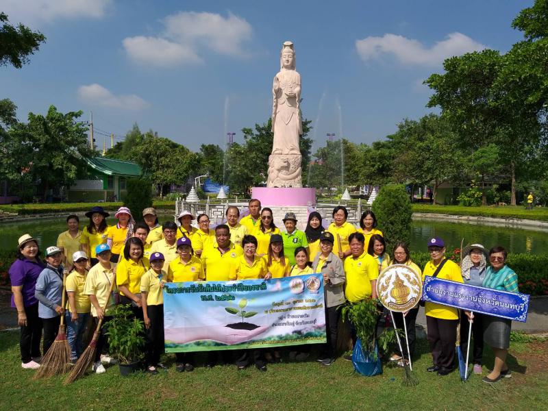 วันพุธที่ 30 ตุลาคม 2562 เวลา 10.00 น. ณ บริเวณสวนสาธารณะเฉลิมพระเกียรติ หมู่1 ตำบลเสาธงหิน อำเภอบางใหญ่ จังหวัดนนทบุรี : นางกัญจนาภรณ์ ไซกัล แรงงานจังหวัดนนทบุรี เผยว่าสำนักงานแรงงานจังหวัดนนทบุรีจัดกิจกรรมแบบบูรณาการร่วมกับหน่วยงานสังกัดกระทรวงแรงงานในจังหวัดนนทบุรี และเทศบาลบางม่วงในโครงการวันรักต้นไม้ประจำปีของชาติ พ.ศ.2562 เพื่อน้อมรำลึกถึงพระมหากรุณาธิคุณของสมเด็จพระศรีนครินทราบรมราชชนนี รวมทั้งสร้างจิตสำนึกของประชาชนให้เกิดความรักความหวงแหนทรัพยากรป่าไม้ของชาติ ซึ่งกิจกรรมประกอบไปด้วย การบำรุงรักษ้านไม้ การพรวนดิน การกำจัดวัชพืช กวาดทำความสะอาดสถานที่ การรดน้ำต้นไม้ และการปลูกต้นทองอุไร ทั้งนี้มีผู้อำนวยการสำนักงานพัฒนาฝีมือแรงงานนนทบุรี ผู้แทนสำนักงานประกันสังคมจังหวัดนนทบุรี ผู้แทนสำนักงานสวัสดิการและคุ้มครองแรงงานจังหวัดนนทบุรี ผู้แทนสำนักงานจัดหางาน ข้าราชการเจ้าหน้าที่สังกัดกระทรวงแรงงานจังหวัดนนทบุรี บุคคลากรจากเทศบาลบางม่วง อาสาสมัครแรงงานจังหวัดนนทบุรี และประชาชนทั่วไป เข้าร่วมกิจกรรมประมาณ 50 คน