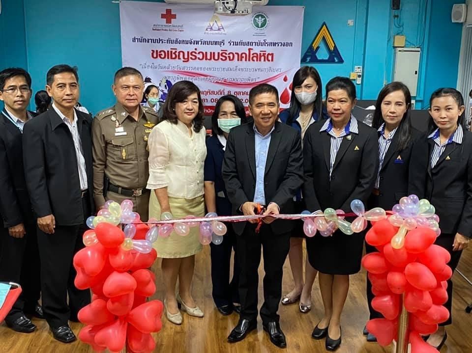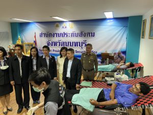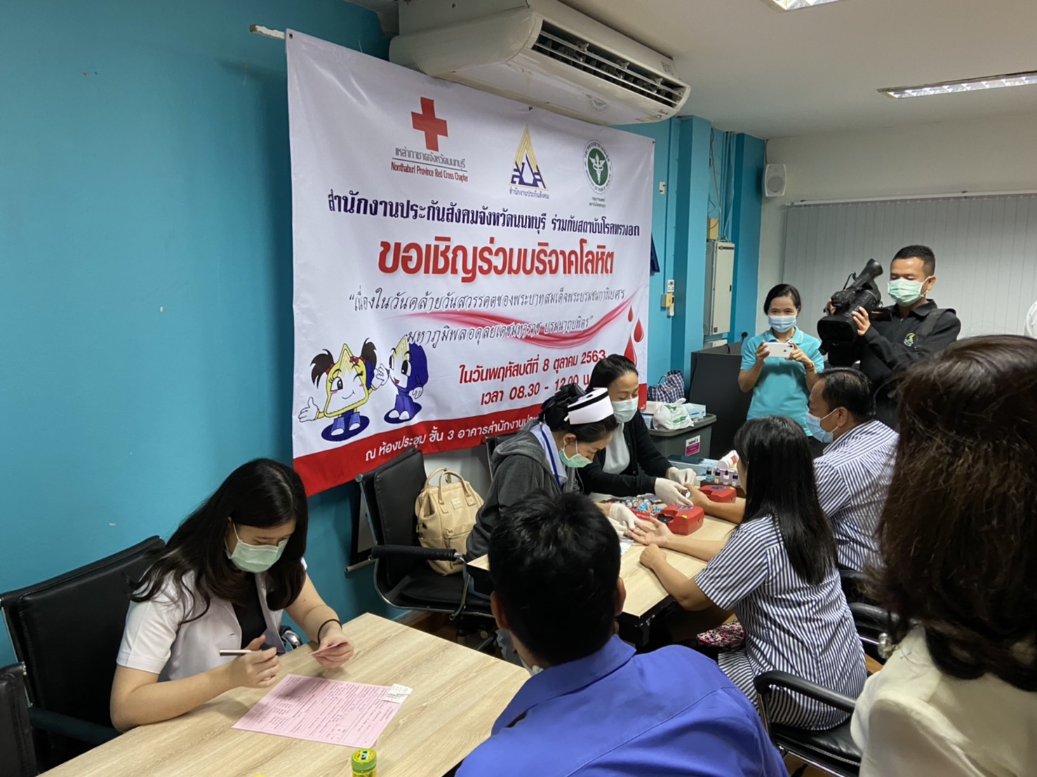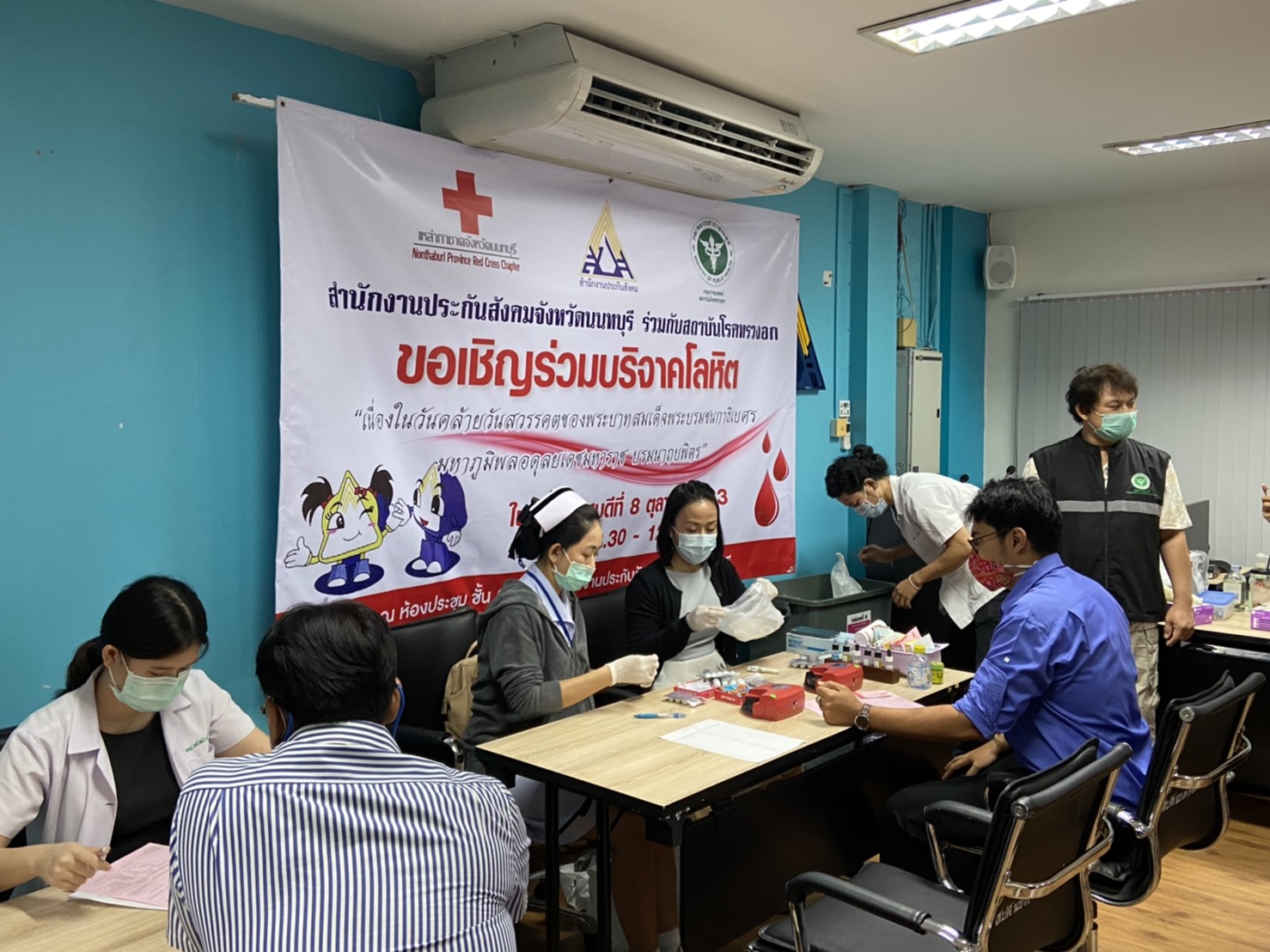 วันที่ 8 ตุลาคม 2563 สำนักงานแรงงานจังหวัดนนทบุรีเข้าร่วมงานบริจาคโลหิต เนื่องในวันคล้ายวันสวรรคตของพระบาทสมเด็จพระบรมชนกาธิเบศร มหาภูมิพลอดุลยเดชมหาราช บรมนาถบพิตร จัดขึ้นโดย สำนักงานประกันสังคมจังหวัดนนทบุรี ร่วมกับสถาบันโรคทรวงอก เพื่อจัดหาโลหิตสำรอง และตอบสนองต่อนโยบาย Healthy Thailand เพื่อผู้ประกันตนของสำนักงานประกันสังคม