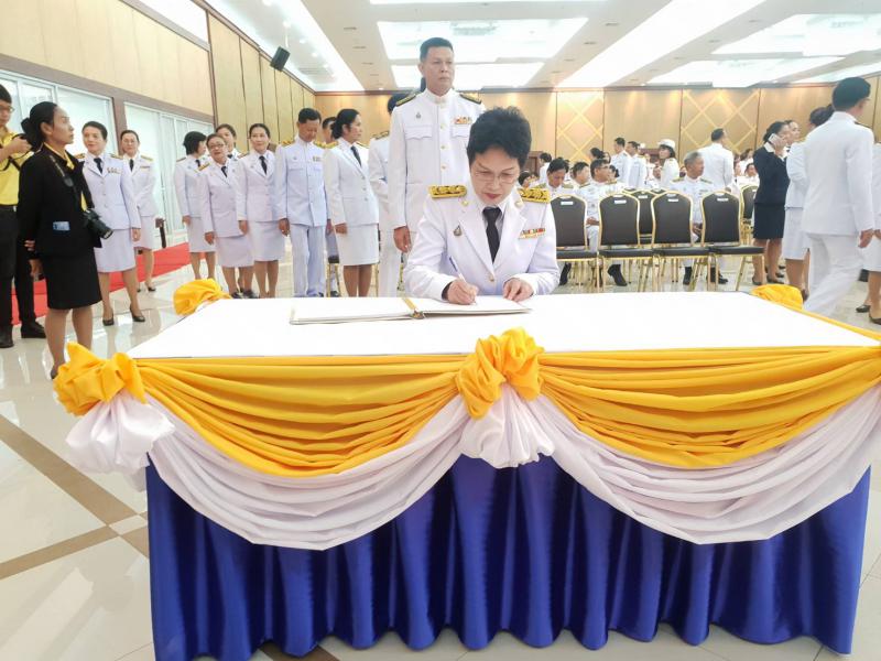 วันอาทิตย์ที่ 28 กรกฎาคม 2562 เวลา 08.00 น. : นางกัญจนาภรณ์ ไซกัล แรงงานจังหวัดนนทบุรี เผยว่าข้าราชการ เจ้าหน้าที่สำนักงานแรงงานจังหวัดนนทบุรี ร่วมถึงหน่วยงานในสังกัดกระทรวงแรงงานจังหวัดนนทบุรี ร่วมพิธีลงนามถวายพระพรชัยมงคล และพิธีถวายสัตย์ปฏิญาณการเป็นข้าราชการที่ดีเเละพลังของแผ่นดิน เนื่องในวันเฉลิมพระชนมพรรษาพระบาทสมเด็จพระเจ้าอยู่หัว ประจำปีพุทธศักราช 2562 ณ ห้องประชุมใหญ่ ชั้น 5 เทศบาลนครนนทบุรี โดยมีนายภานุ แย้มศรี ผู้ว่าราชการจังหวัดนนทบุรี เป็นประธานในพิธี และมีรองผู้ว่าราชการจังหวัดนนทบุรี หัวหน้าส่วนราชการ หัวหน้าหน่วยงานรัฐวิสาหกิจ นายอำเภอ ข้าราชการฝ่ายต่างๆ ทหาร ตำรวจ กำนันผู้ใหญ่บ้าน สมาชิกเหล่ากาชาดจังหวัดนนทบุรี และผู้เกี่ยวข้องเข้าร่วมในพิธีด้วย