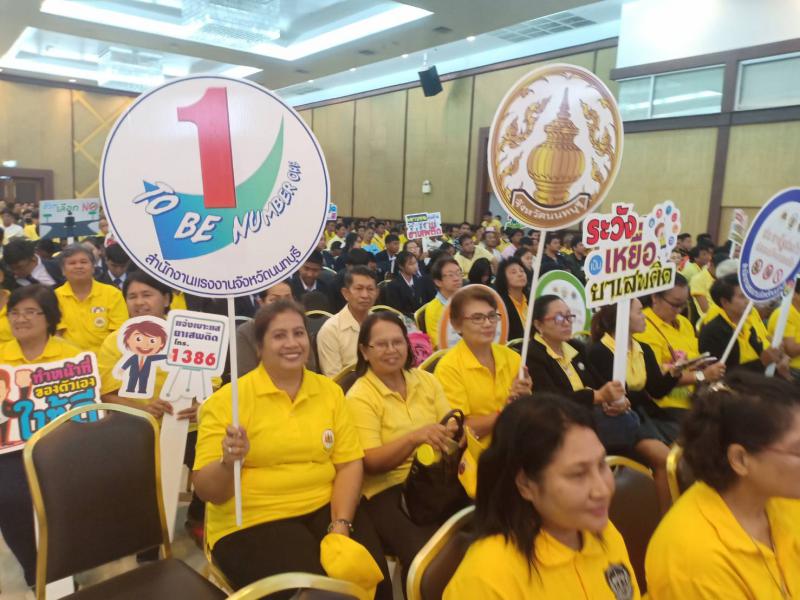 วันพุธที่ 26 มิถุนายน 2562 เวลา 13.00 น. ณ ห้องประชุมใหญ่ ชั้น 5 สำนักงานเทศบาลนครนนทบุรี : นางกัญจนาภรณ์ ไซกัล แรงงานจังหวัดนนทบุรี เผยว่าสำนักงานแรงงานจังหวัดนนทบุรีได้เข้าร่วมกิจกรรมรณณงค์ประชาสัมพันธ์ เนื่องในวันต่อต้านยาเสพติดโลก ประจำปี 2562 ที่จัดขึ้นโดยที่ทำการปกครองจังหวัดนนทบุรี ทั้งนี้สำนักงานแรงงานได้รับมอบหมายให้นำทีมอาสาสมัครแรงงาน จำนวน 30 คน เข้าร่วมกิจกรรมรวมพลังมวลชนต่อต้านยาเสพติด และรงณรงค์ให้ความรู้แก่พนักงาน ลูกจ้างที่เข้าร่วมกิจกรรม ซึ่งกิจกรรมในครั้งนี้ยังมีการมอบเกียรติบัตรให้แก่หน่วยงาน/ชมรม TO BE NUMBER ONE ที่มีการดำเนินการโครงการ TO BE NUMBER ONE ที่ดีเยี่ยม ซึ่งสำนักงานแรงงานจังหวัดนนทบุรีได้รับมอบเกียรติบัตร ในฐานะที่สนับสนุนการดำเนินงานโครงการ TO BE NUMBER ONE จังหวัดนนทบุรี ประจำปี 2562 และชมรม TO BE NUMBER ONE บริษัท เธียรสุรัตน์ จำกัด (มหาชน) ที่สำนักงานแรงงานได้ให้การสนับสนุนอยู่นั้นก็ได้รับมอบเกียรติบัตร ในฐานะที่สนับสนุนการดำเนินงานโครงการ TO BE NUMBER ONE จังหวัดนนทบุรี ประจำปี 2562 เช่นกัน ทั้งนี้กิจกรรมดังกล่าวมีมีนายภานุ แย้มศรี ผู้ว่าราชการจังหวัดนนทบุรี เป็นประธานในพิธีเปิดและเป็นผู้มอบเกียรติบัตรในครั้งนี้
