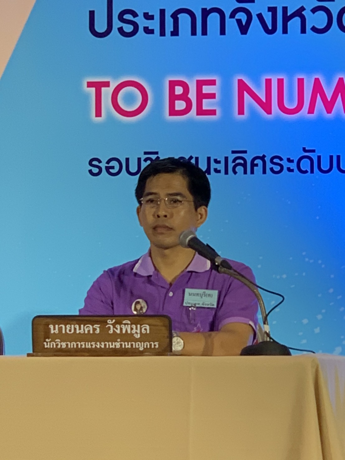 วันที่ 16 กันยายน 2563 เวลา 08.30 น. นางกัญจนาภรณ์ ไซกัล แรงงานจังหวัดนนทบุรี ได้มอบหมายให้นายนคร วังพิมูล นักวิชาการแรงงานชำนาญการ และนายอัฎฐพล บุญสร้าง นักวิชาการแรงงานปฏิบัติการ เข้าร่วมทีมคณะนำเสนอผลงานจังหวัด TO BE NUMBER ONE ระดับประเทศ ประจำปี 2563 ในงานครบรอบ 18 ปี มหกรรมรวมพลสมาชิก TO BE NUMBER ONE ประจำปี 2563 ณ ฮอลล์ 4 และห้องแกรนด์ ไดมอนด์ บอลรูม อาคารอิมแพ็ค ฟอรั่ม เมืองทองธานี โดยครั้งนี้นายนคร วังพิมูล นักวิชาการแรงงานชำนาญการ ได้เป็นหนึ่งในคณะผู้นำเสนอผลงานจังหวัด เพื่อรักษามาตรฐานพร้อมเป็นต้นแบบระดับทองปีที่ 1 ในการประกวดจังหวัด TO BE NUMBER ONE ระดับประเทศ ต่อไป
