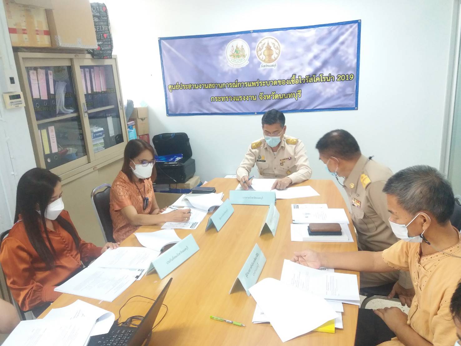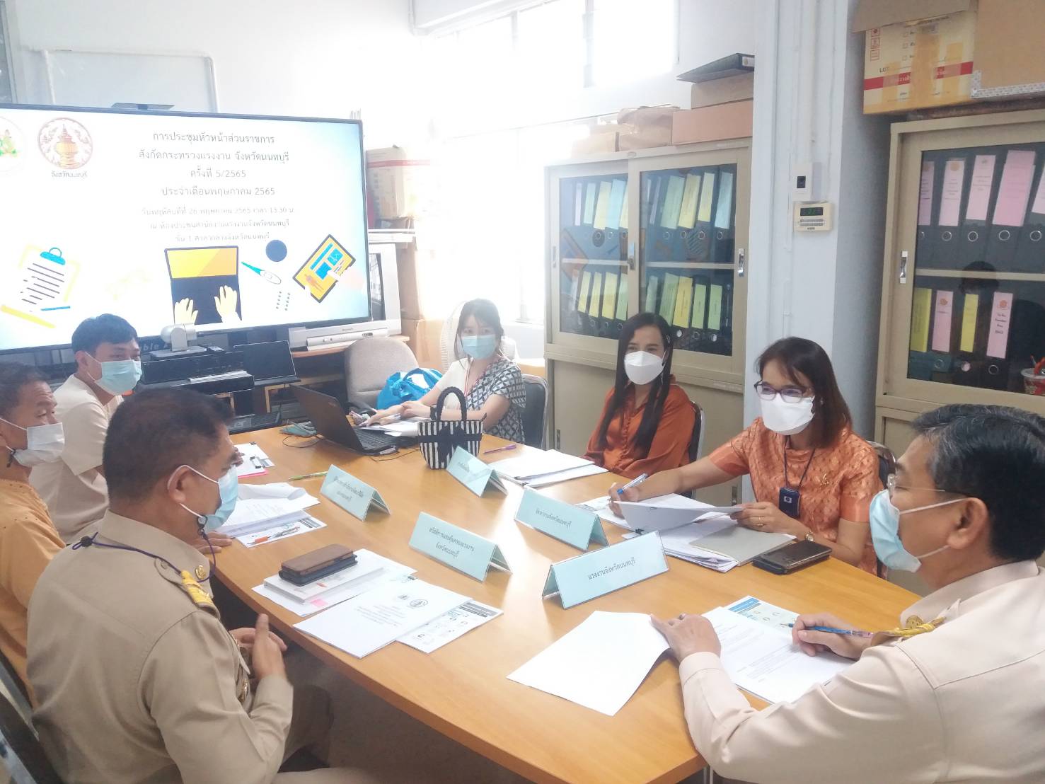 การประชุมหัวหน้าส่วนราชการสังกัดกระทรวงแรงงานจังหวัดนนทบุรี ประจำเดือน พฤษภาคม 2565 วันที่ 26 พฤษภาคม 2565 เวลา 13.30 น. มี นายวิชิตร สุวรรณมาก แรงงานจังหวัดนนทบุรี เป็นประธาน นางสุนทรี วิลาทอง จัดหางานจังหวัดนนทบุรี นายสุกิจ ครุฑคง สวัสดิการและคุ้มครองจังหวัดนนทบุรี ผู้แทนผู้อำนวยการสำนักงานพัฒนาฝีมือแรงงานนนทบุรี ผู้แทนประกันสังคมจังหวัดนนทบุรี และเจ้าหน้าที่สำนักงานแรงงานจังหวัดนนทบุรี เข้าร่วมประชุมดังกล่าว เพื่อหารือและติดตามผลการดำเนินงานตามนโยบายสำคัญของกระทรวงแรงงานและนโยบายจังหวัด