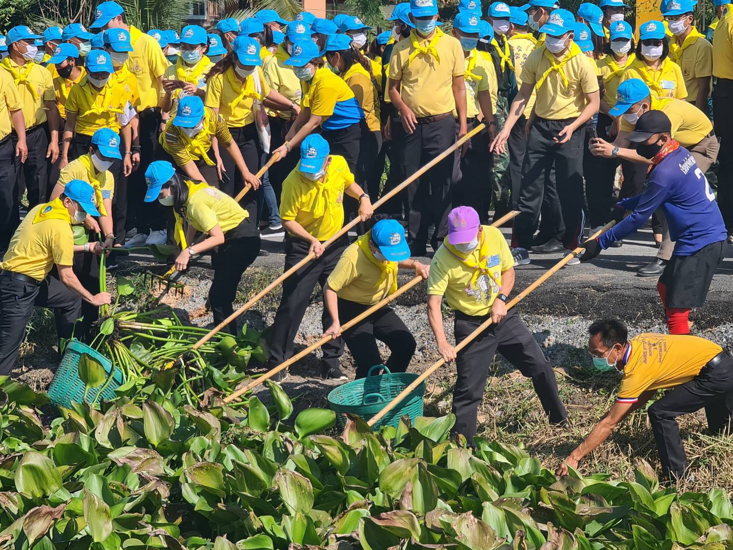 วันที่ 5 ธันวาคม 2563 เวลา 9.30 น. นายวิชิตร สุวรรณมาก แรงงานจังหวัดนนทบุรี มอบหมายให้ นางพิศมัย เอี่ยมวัฒนานันท์ เจ้าพนักงานการเงินและบัญชีชำนาญงาน นางสาวเพ็ญศรี แก้วช่วย เจ้าหน้าที่บริหารงานทั่วไป และนางสาวพัชรี สัตยารังสรรค์ เจ้าที่วิเคราะห์และประเมินผลเบื้องต้น เข้าร่วมกิจกรรมจิตอาสาพัฒนากำจัดผักตบชวาในคลองนาหมอน เนื่องในวันคล้ายวันพระบรมราชสมภพพระบาทสมเด็จพระบรมชนกาธิเบศร มหาภูมิพลอดุลยเดชมหาราช บรมนาถบพิตร 5 ธันวาคม 2563 เพื่อแสดงออกถึงความจงรักภักดีและสำนึกในพระมหากรุณาธิคุณของในหลวงรัชกาลที่ 9 ที่ทรงประกอบพระราชกรณียกิจนานัปประการเพื่อประโยชน์สุขของประชาชน ตลอดจนความสมัครสมานสามัคคี มีความสุข และประเทศชาติมีความมั่นคงอย่างยั่งยืน โดยมี10 เป็นประธานในพิธี