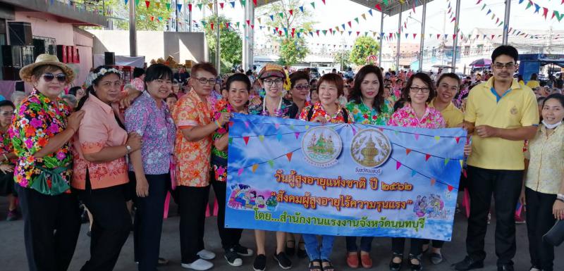 เมื่อวันที่ 21 เมษายน 2562 นางกัญจนาภรณ์ ไซกัล แรงงานจังหวัดนนทบุรี เผยว่าสำนักงานแรงงานจังหวัดนนทบุรี กำหนดบูรณาการกิจกรรมเนื่องในวันผู้สูงอายุแห่งชาติ ประจำปี 2562 ร่วมกับหมู่บ้านรัตนาธิเบศร์ ณ ตึกศูนย์ศักยภาพ หมู่บ้านรัตนาธิเบศร์ ตำบลบางรักพัฒนา อำเภอบางบัวทอง จังหวัดนนทบุรี โดยมีนางประภาพร อัมรินทร์นุเคราะห์ นักวิชาการแรงงานชำนาญการ และนางสาวกัญญาภัค พรหมบางญวน นักวิชาการแรงงานปฏิบัติการ เป็นผู้ประสาน และดำเนินการต่างๆ กิจกรรมดังกล่าวจัดขึ้นเพื่อสร้างความตระหนักให้สังคมเตรียมความพร้อมรองรับสังคมสูงอายุอย่างมีคุณภาพและเห็นความสำคัญที่จะไม่กระทำความรุนแรงในผู้สูงอายุทุกรูปแบบ ทั้งนี้มีข้าราชการ เจ้าหน้าที่ในสังกัดกระทรวงแรงงานจังหวัดนนทบุรี อาสาสมัครแรงงาน และมีผู้สูงอายุเข้าร่วมกิจกรรมดังกล่าวประมาณ 500 คน