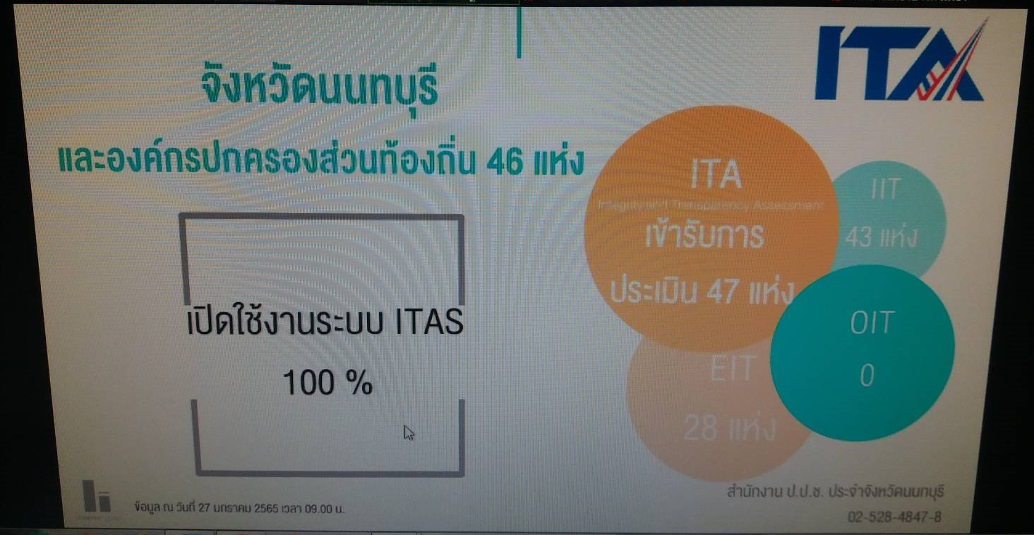 วันที่ 28 มกราคม 2565 นายวิชิตร สุวรรณมาก แรงงานจังหวัดนนทบุรี มอบหมายให้ นางพิศมัย เอี่ยมวัฒนานันท์ เจ้าพนักงานการเงินและบัญชีชำนาญงาน เข้าร่วมประชุมคณะอนุกรรมการการดำเนินงานตามยุทธศาสตร์ชาติว่าด้วยการป้องกันและปราบปรามทุจริตจังหวัดนนทบุรี ประจำปีงบประมาณ 2565 ครั้งที่ 7-3/2565 เกี่ยวกับปฏิทินการประเมินคุณธรรมและความโปร่งใสในการดำเนินงานของหน่วยงานภาครัฐ (Integrity and transparency Assessment : ITA) และ สรุปผลคดี ป.ป.ช.ที่น่าสนใจ ผ่านระบบ V-Cube Conference โดยสำนักงานป้องกันและปราบปรามการทุจริตแห่งชาติ ประจำจังหวัดนนทบุรี