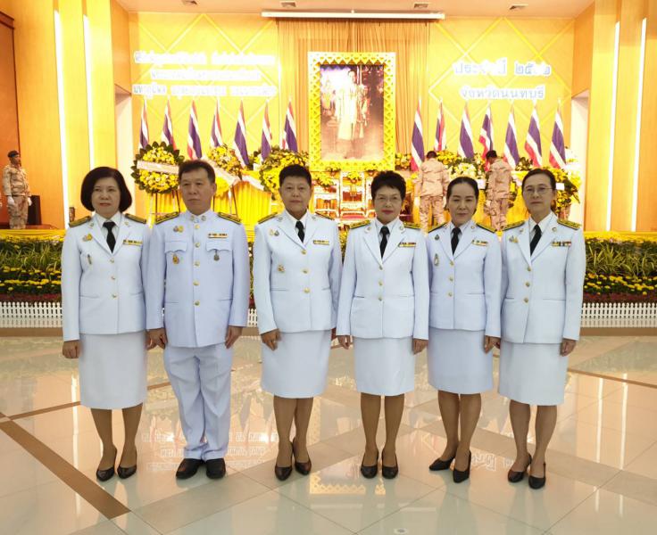 วันที่ 13 ตุลาคม 2562 เวลา 06.00 น. นางกัญจนาภรณ์ ไซกัล แรงงานจังหวัดนนทบุรี พร้อมข้าราชการสำนักงานแรงงานจังหวัดนนทบุรี ร่วมทำบุญตักบาตร และร่วมพิธีบำเพ็ญกุศลเนื่องในวันคล้ายวันสวรรคตพระบาทสมเด็จพระบรมชนกาธิเบศร มหาภูมิพลอดุลยเดชมหาราช บรมนาถบพิตร โดยมีนายสุจินต์ ไชยชุมศักดิ์ ผู้ว่าราชการจังหวัดนนทบุรี เป็นประธานในพิธี ณ บริเวณศาลากลางจังหวัดนนทบุรี ต่อมาเวลา 08.00 น. ทางสำนักงานแรงงานจังหวัดนนทบุรีเข้าร่วมพิธีวางพวงมาลา และพิธีถวายบังคม เพื่อน้อมรำลึกในพระมหากรุณาธิคุณในหลวงรัชกาลที่ 9 ณ ห้องประชุมใหญ่ ชั้น 5 อาคารเทศบาลนครนนทบุรี โดยมีนายสุจินต์ ไชยชุมศักดิ์ ผู้ว่าราชการจังหวัดนนทบุรี เป็นประธานในพิธีและมีหัวหน้าส่วนราชการในจังหวัดนนทบุรี เข้าร่วมพิธีฯ