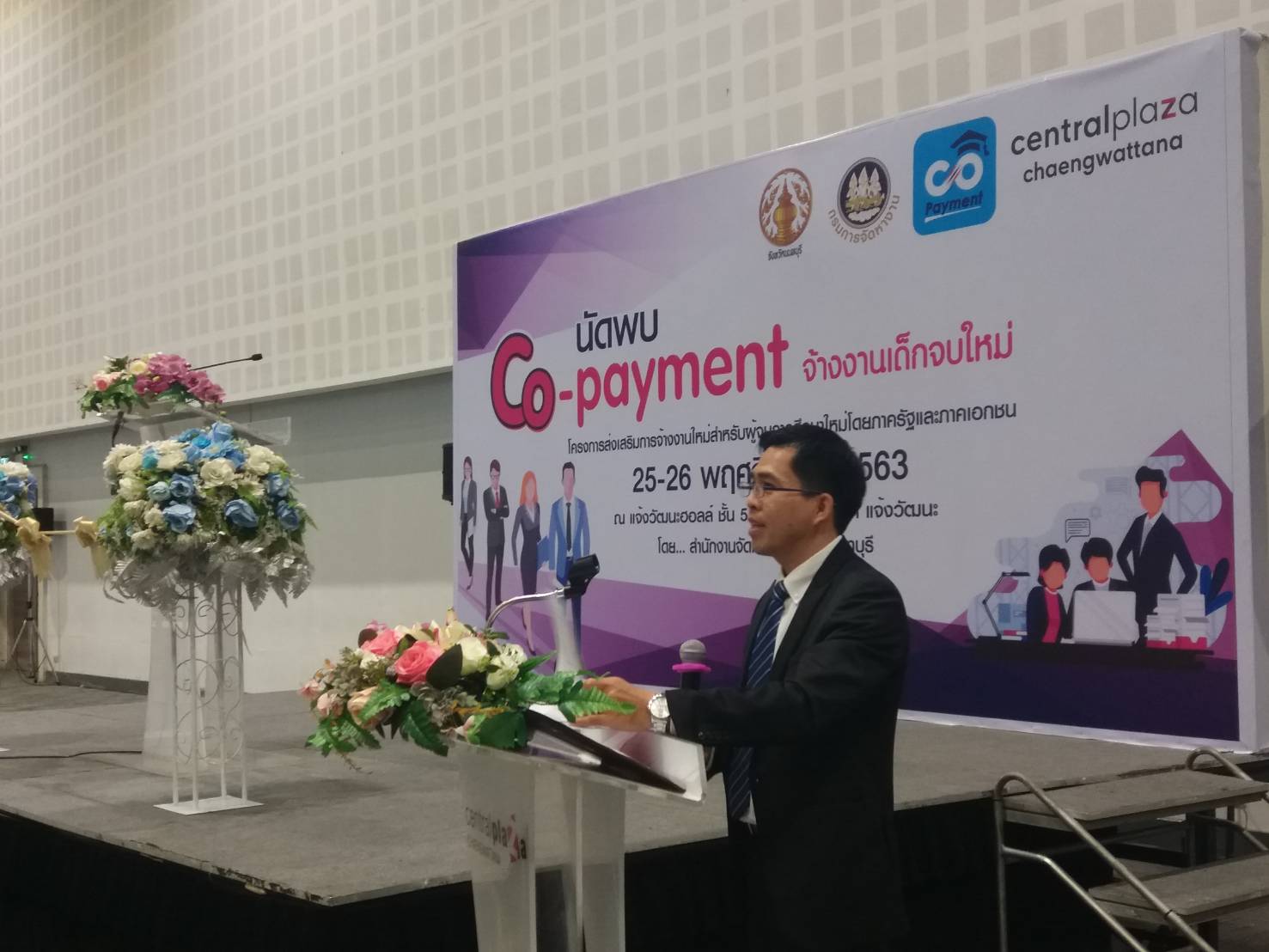 วันที่ 25 พฤศจิกายน 2563 เวลา 13.30 น. ณ แจ้งวัฒนะฮอลล์ ชั้น 5.5 ศูนย์การค้าเซ็นทรัลพลาซา แจ้งวัฒนะ อำเภอปากเกร็ด จังหวัดนนทบุรี: นายวิชิตร สุวรรณมาก แรงงานจังหวัดนนทบุรี ร่วมเป็นเกียรติในพิธีเปิดกิจกรรมส่งเสริมการจ้างงานใหม่สำหรับผู้จบการศึกษาใหม่โดยภาครัฐและภาคเอกชน จังหวัดนนทบุรี (นัดพบ Co-Payment) จัดขึ้นโดยสำนักงานจัดหางานจังหวัดนนทบุรี โดยมีนาย ชาญชัย ศรศรีวิชัย ปลัดจังหวัดนนทบุรี เป็นประธานในพิธี ร่วมด้วยหัวหน้าส่วนราชการและผู้แทนส่วนราชการประจำจังหวัดนนทบุรี
