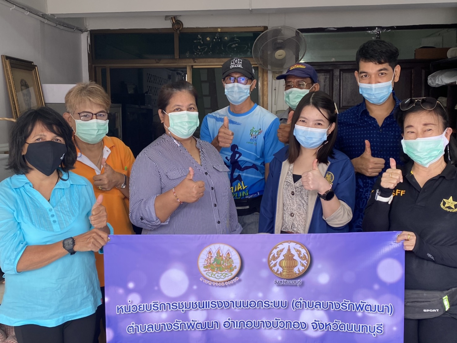วันที่ 11 มิถุนายน 2564 นายวิชิตร สุวรรณมาก แรงงานจังหวัดนนทบุรี มอบหมายให้ นางสาวโสภิตา อินทรีย์วงศ์ นักวิชาการแรงงานชำนาญการ และนายอัฎฐพล บุญสร้าง นักวิชาการแรงงานปฏิบัติการ ลงพื้นที่ “หน่วยบริการชุมชนแรงงานนอกระบบ” ตำบลบางรักพัฒนา อำเภอบางบัวทอง จังหวัดนนทบุรี พร้อมด้วยอาสาสมัครแรงงานประจำตำบลเข้าร่วมพิธีเปิด โดยได้ชี้แจงแนวทางการดำเนินงานเพื่อช่วยเหลือแรงงานนอกระบบ ในมิติส่งเสริม คุ้มครอง พัฒนา ที่ส่งผลให้แรงงานนอกระบบ มีอาชีพ มีรายได้ และมีคุณภาพชีวิตที่ดี