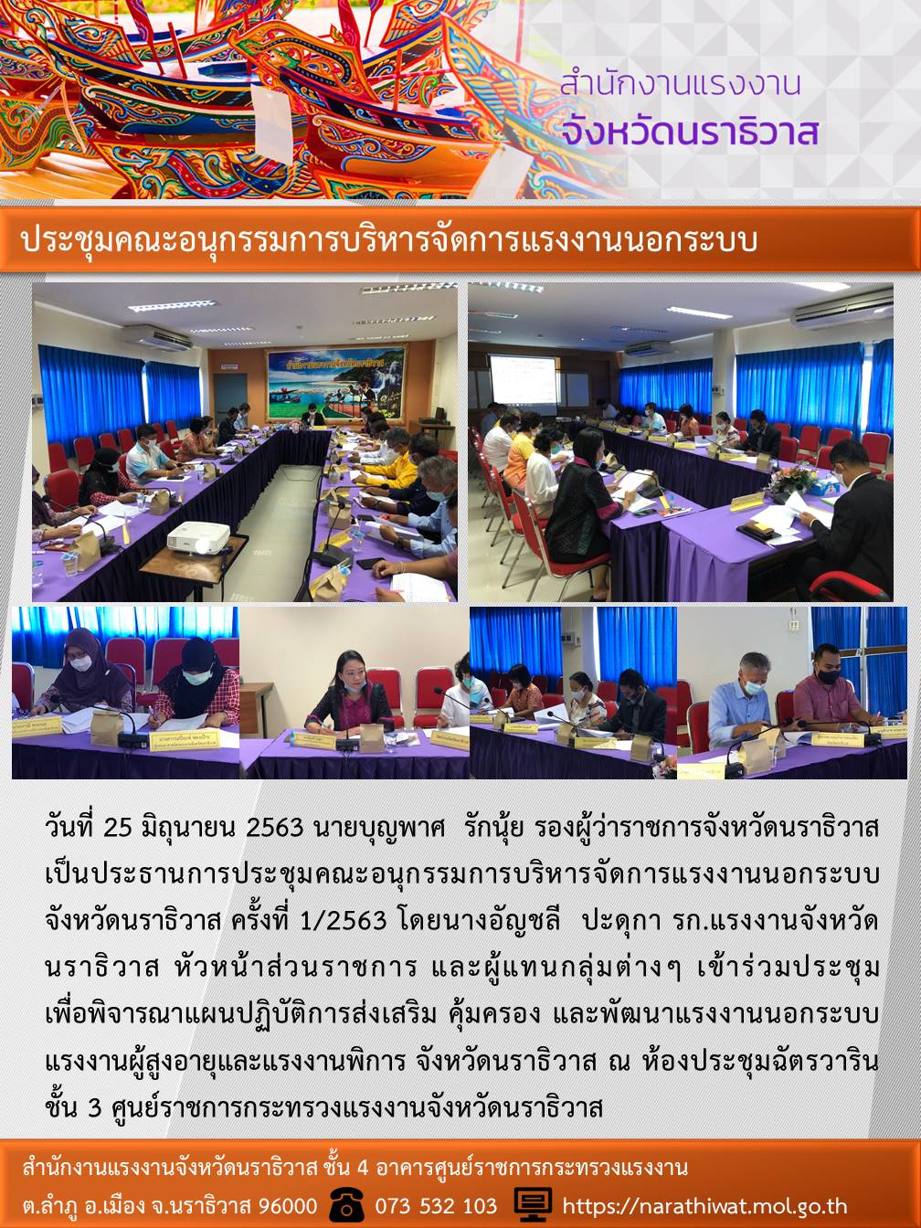 สำนักงานแรงงานจังหวัดนราธิวาส จัดประชุมประชุมคณะอนุกรรมการบริหารจัดการแรงงานนอกระบบจังหวัดนราธิวาส ครั้งที่ 1/2563