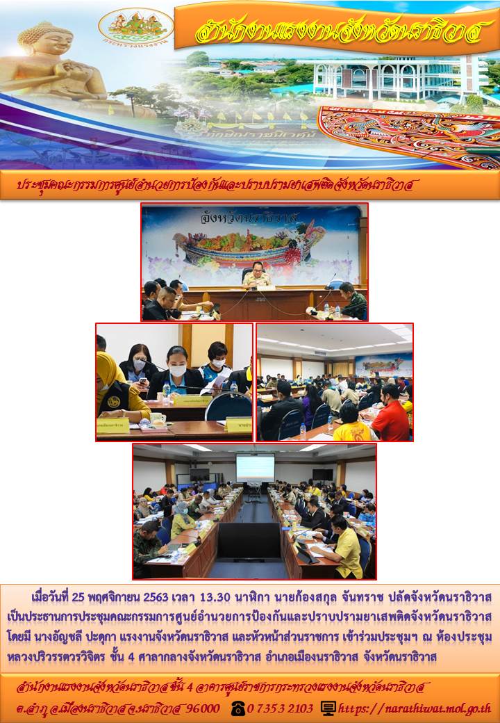 สำนักงานแรงงานจังหวัดนราธิวาส ร่วมประชุมคณะกรรมการศูนย์อำนวยการป้องกันและปราบปรามยาเสพติดจังหวัดนราธิวาส