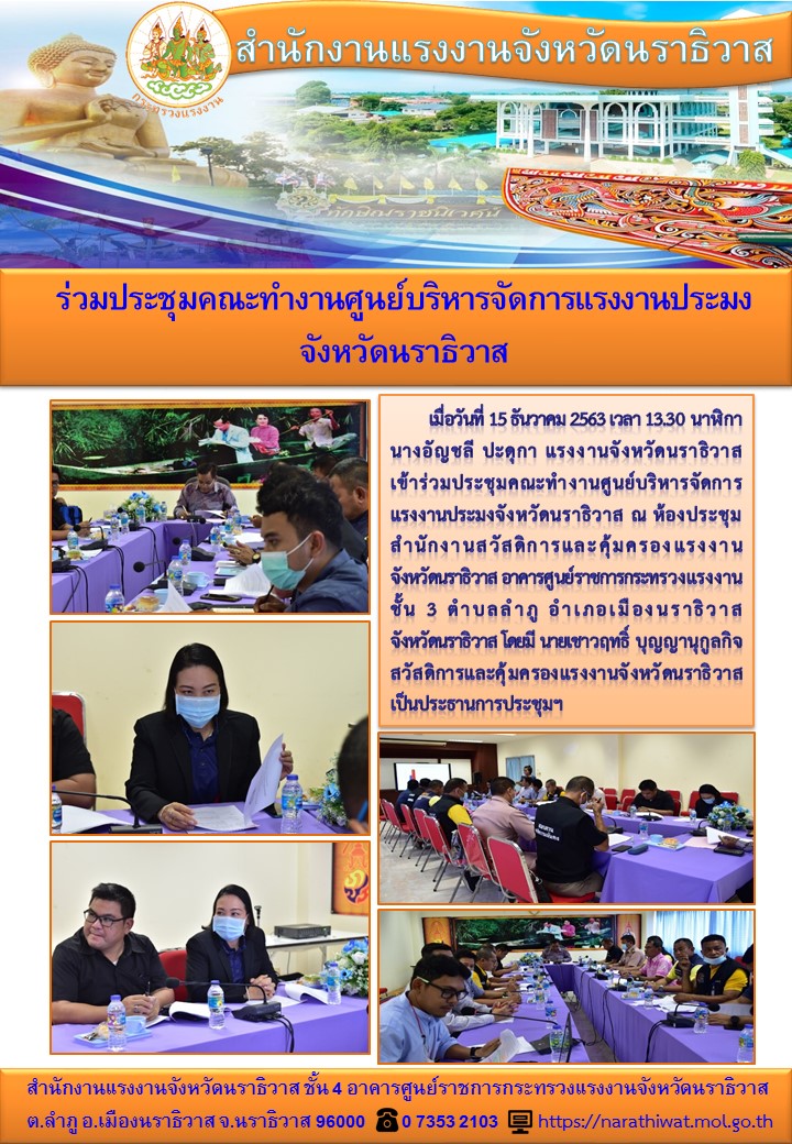 สำนักงานแรงงานจังหวัดนราธิวาส ร่วมประชุมคณะทำงานศูนย์บริหารจัดการแรงงานประมงจังหวัดนราธิวาส