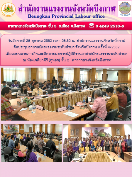 สำนักงานแรงงานจังหวัดบึงกาฬ จัดประชุมอาสาสมัครแรงงานระดับตำบล ครั้งที่ 4 ประจำปีงบประมาณ 2562
