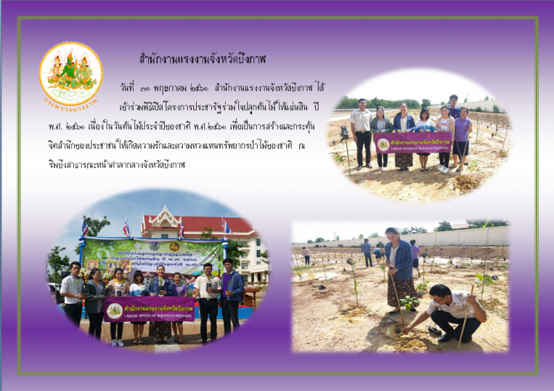 สำนักงานแรงงานจังหวัดบึงกาฬ ร่วมโครงการประชารัฐร่วมใจปลูกต้นไม้ให้แผ่นดิน ณ บริเวณศาลากลางจังหวัดบึงกาฬ
