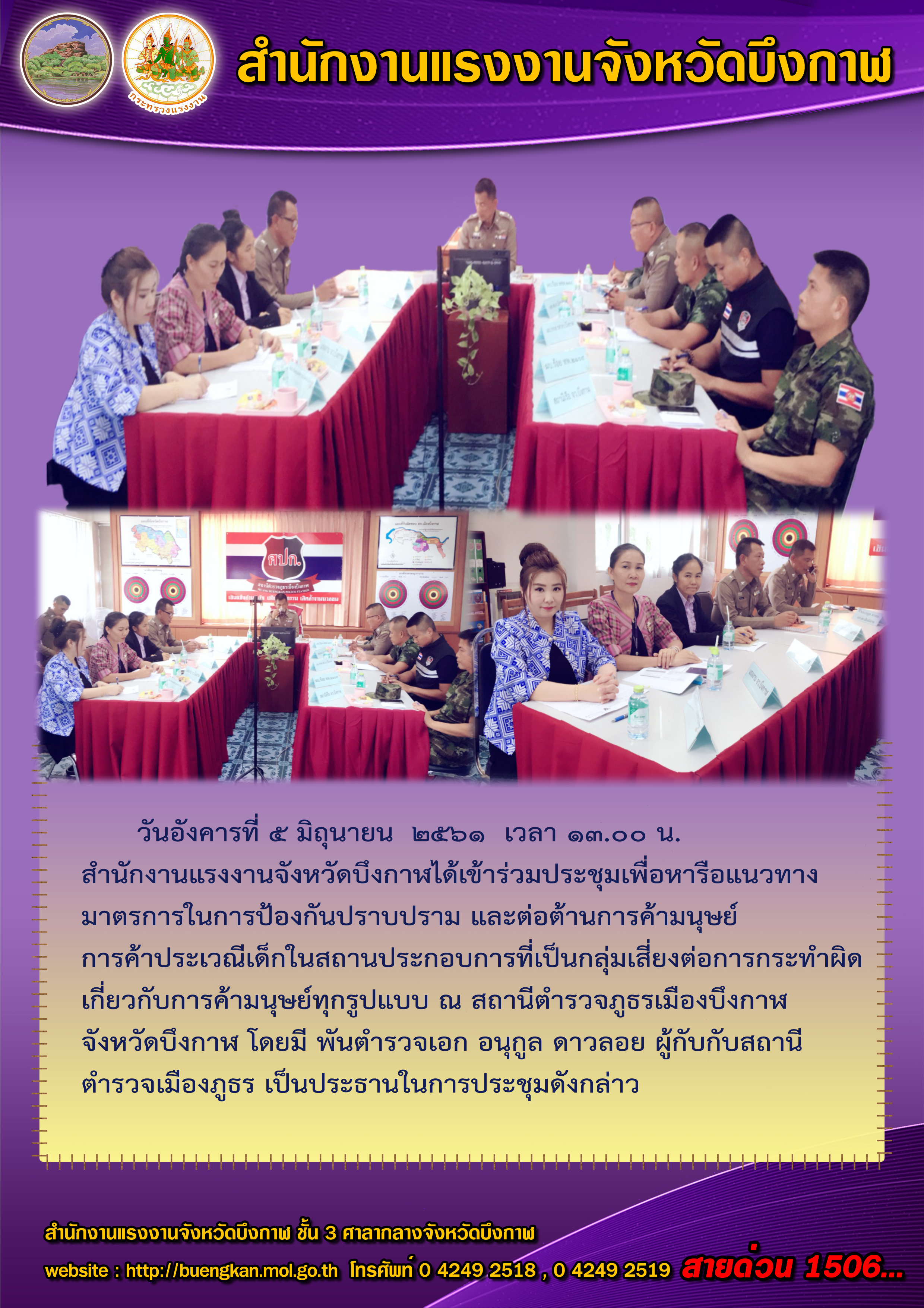 สำนักงานแรงงานจังหวัดบึงกาฬ ได้เข้าร่วมประชุม ณ สถานีตำรวจภูธรเมืองบึงกาฬ จังหวัดบึงกาฬ
