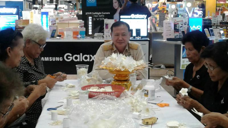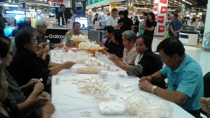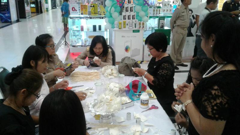 เมื่อวันที่ ๒๖ มิถุนายน ๒๕๖๐ หน่วยงานสังกัดกระทรวงแรงงานจังหวัดบุรีรัมย์ ได้ร่วมบูรณาการกับห้างสรรพสินค้าโรบินสันบุรีรัมย์เปิดโอกาสให้ประชาชนและผู้สูงอายุ ได้ทำดอกไม้จันทน์ เพื่อแสดงความจงรักภักดีและถวายเป็นพระราชกกุศลในการมีส่วนร่วมถวายพระเพลิงพระบรมศพพระบาทสมเด็จพระปรมินทรมหาภูมิพลอดุลยเดช ในระหว่างวันที่ ๒๖ – ๓๐ มิถุนายน ๒๕๖๐ ณ ห้างสรรพสินค้าโรบินสัน ตำบลกระสัง อำเภอเมืองบุรีรัมย์ จังหวัดบุรีรัมย์ โดยมี นางสาวอรวรรณ ผลิตาพร แรงงานจังหวัดบุรีรัมย์ เป็นประธานพิธีเปิด นายสมพงษ์ กมลจิตรวี ผู้อำนวยการสำนักงานพัฒนาฝีมือแรงงานบุรีรัมย์ กล่าวรายงาน แขกผู้มีเกียรติร่วมพิธีเปิด ๑๐ หน่วยงาน