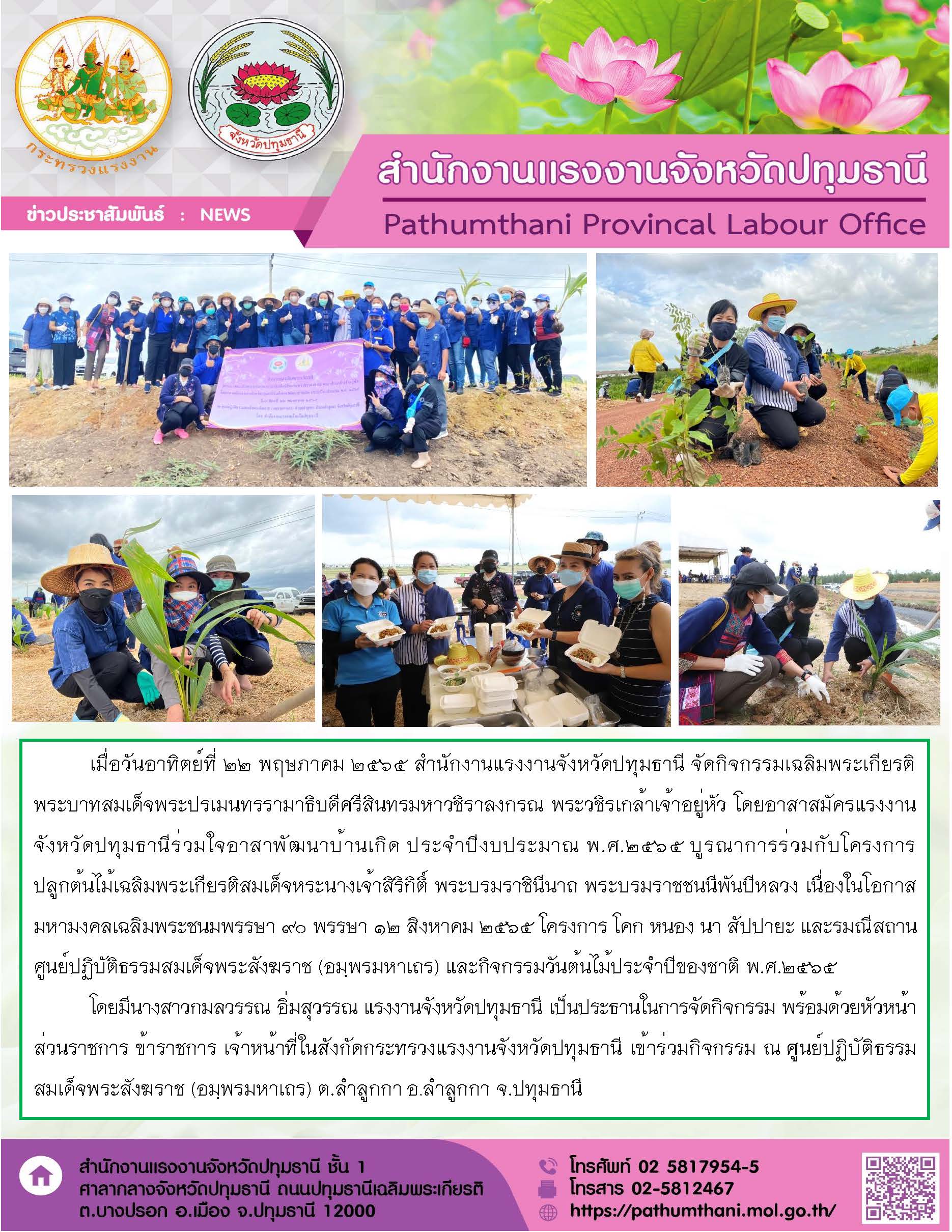 สำนักงานแรงงานจังหวัดปทุมธานี จัดกิจกรรมเฉลิมพระเกียรติพระบาทสมเด็จพระปรเมนทรรามาธิบดี ศรีสินทรมหาวชิราลงกรณ พระวชิรเกล้าเจ้าอยู่หัว