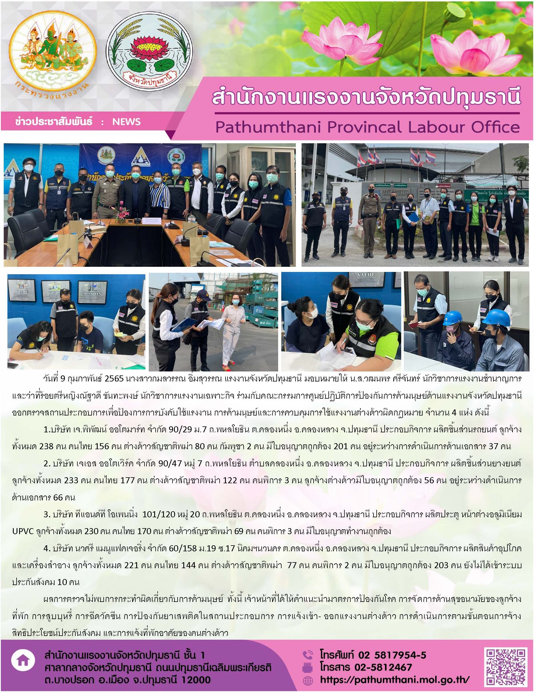 สำนักงานแรงงานจังหวัดปทุมธานี จัดประชุมคณะกรรมการศูนย์ปฏิบัติการป้องกันการค้ามนุษย์ด้านแรงงานจังหวัดปทุมธานี