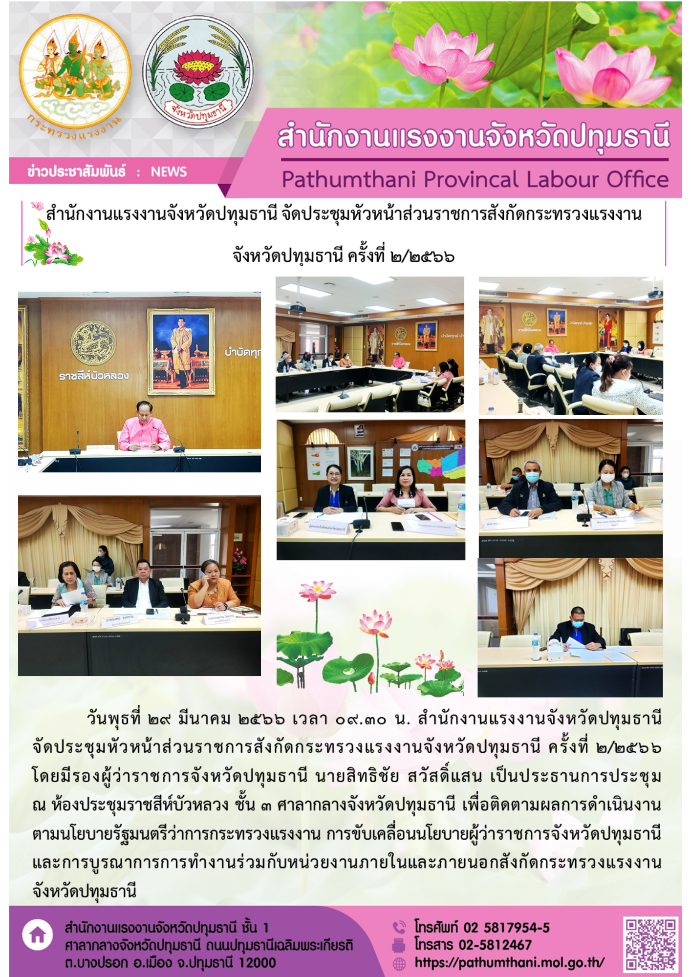 สรจ.ปทุมธานี จัดประชุมหัวหน้าส่วนราชการสังกัดกระทรวงแรงงาน จังหวัดปทุมธานี ครั้งที่ 2/2566