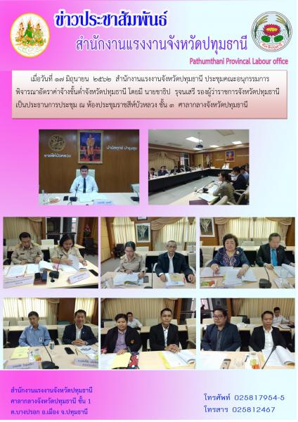 สำนักงานแรงงานจังหวัดปทุมธานี ประชุมคณะอนุกรรมการพิจารณาอัตราค่าจ้างขั้นต่ำจังหวัดปทุมธานี
