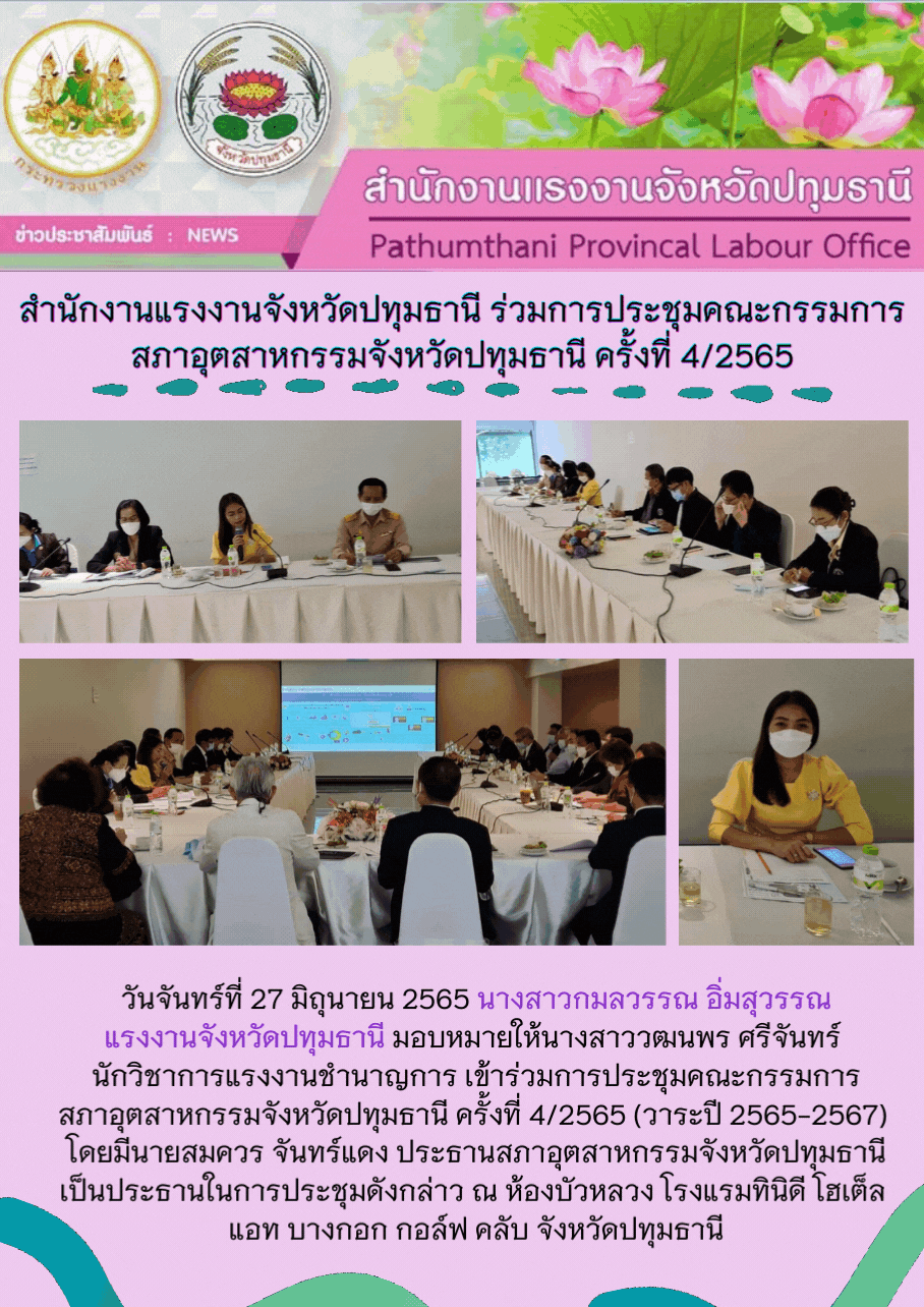 สำนักงานแรงงานจังหวัดปทุมธานี ร่วมการประชุมคณะกรรมการ สภาอุตสาหกรรมจังหวัดปทุมธานี ครั้งที่ 4/2565