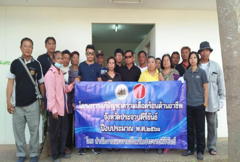 วันที่ 14 กุมภาพันธ์ 2561 เวลา 11.00 น. นางสาวกรจิรัฏฐ์ พงจันทร์ศธร แรงงานจังหวัดประจวบคีรีขันธ์ มอบหมายให้นางสาวมยุรี อินต๊ะมา นักวิชาการแรงงานชำนาญการ ร่วมเปิดโครงการแก้ไขปัญหาความเดือดร้อนด้านอาชีพ จังหวัดประจวบคีรีขันธ์ ปีงบประมาณ พ.ศ.2561 กิจกรรมพัฒนาทักษะฝีมือ หลักสูตรก่ออิฐฉาบปูน และการทำสีตกแต่ง ระหว่างวันที่ 14 – 23 กุมภาพันธ์ 2561 โดยมีผู้เข้าร่วมโครงการทั้งสิ้น 16 คน ณ วัดหนองแก ตำบลหนองแก อำเภอหัวหิน จังหวัดประจวบคีรีขันธ์