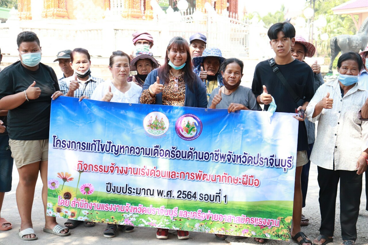 สำนักงานแรงงานจังหวัดปราจีนบุรี ปิดโครงการแก้ไขปัญหาความเดือดร้อนด้านอาชีพ จังหวัดปราจีนบุรี ประจำปีงบประมาณ พ.ศ. 2564 รอบ 1 กิจกรรมจ้างงานเร่งด่วน ทำความสะอาดสาธารณประโยชน์ ศาสนสถาน เพื่อป้องกันการแพร่เชื้อโรคโควิด – 19